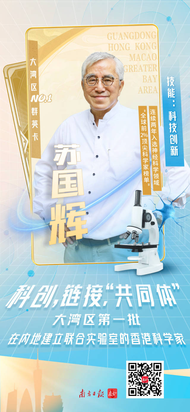 如今,蘇國輝還擔任香港大學的講座教授。他幾乎每個月都會往返于廣州、香港之間,帶動兩地神經科學家一起推進科研項目合作,以交叉互補實現互利共贏。