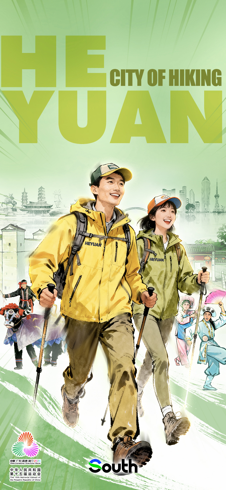 October 21 means 19 days left until the opening of China's 15th National Games. Guangdong Province, China, is fully prepared to host this grand sports event jointly with Hong Kong and Macao, spanning the three regions. Each of Guangdong's 21 cities has its own unique sports characteristics. Let's experience the sports charm of each city through the following promotional posters featuring the sports characteristics of these 21 cities in Guangdong.