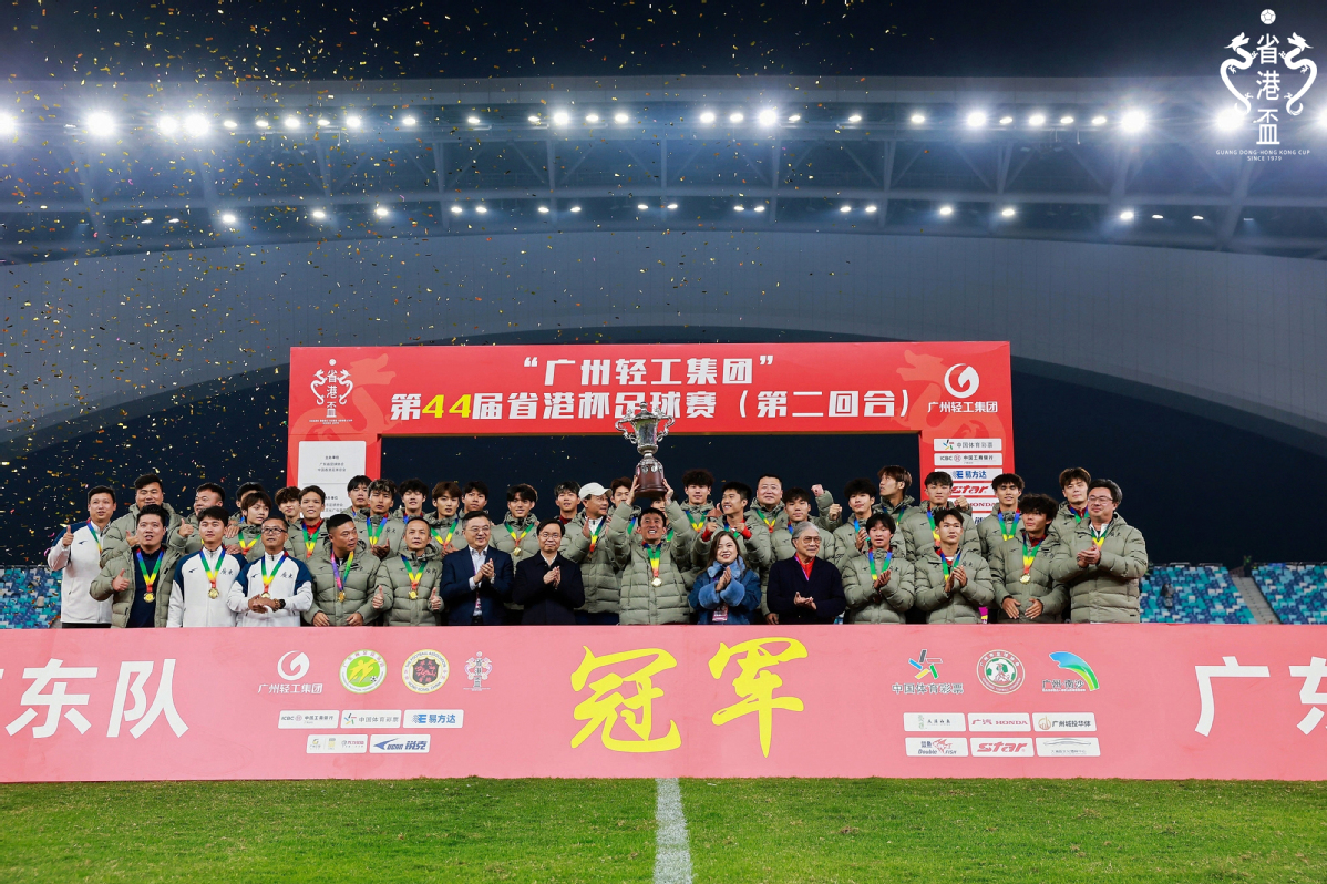 The second leg of the 44th Guangdong-Hong Kong Cup concluded on Saturday at the newly-built Nansha Greater Bay Area Cultural and Sports Center Stadium in Guangzhou, with the Guangdong team taking home the championship.