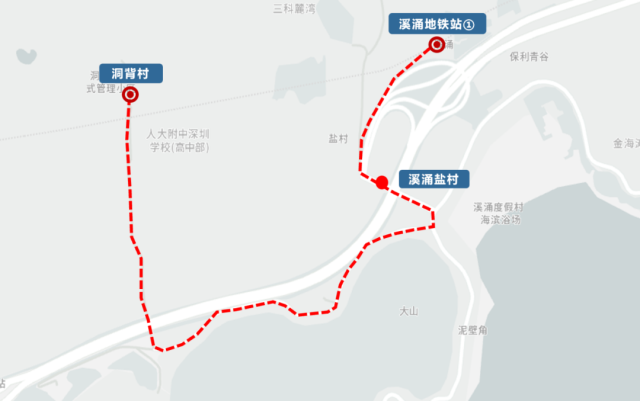 Key Stops: Xichong Yancun (溪涌鹽村), RDFZ Shenzhen School (Senior High Division) (人大附中高中部) (two stops), then returns.