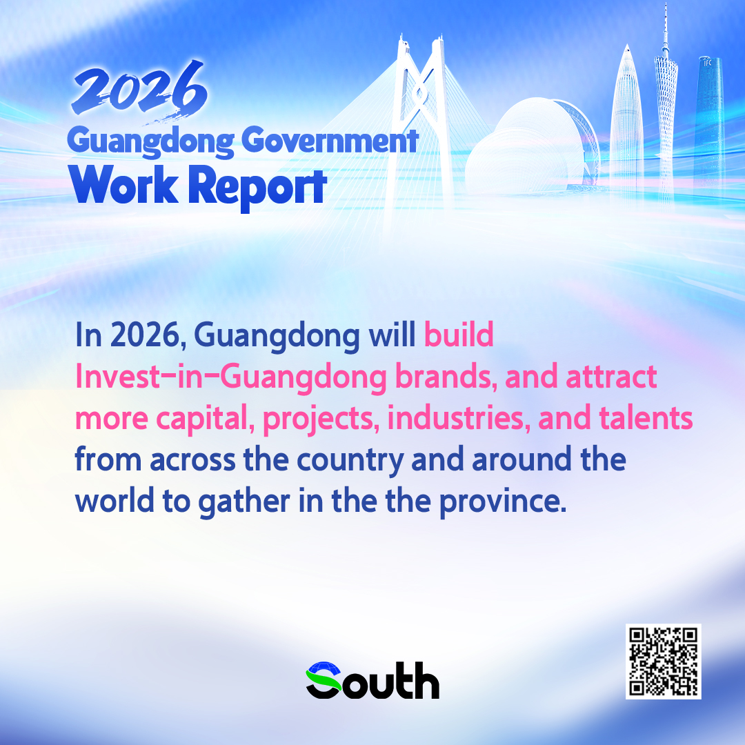 Guangdong, China's largest economic powerhouse, has unveiled its work plan for the whole year of 2026 in the Guangdong Government Work Report delivered by Meng Fanli, Governor of Guangdong Province, on January 26.