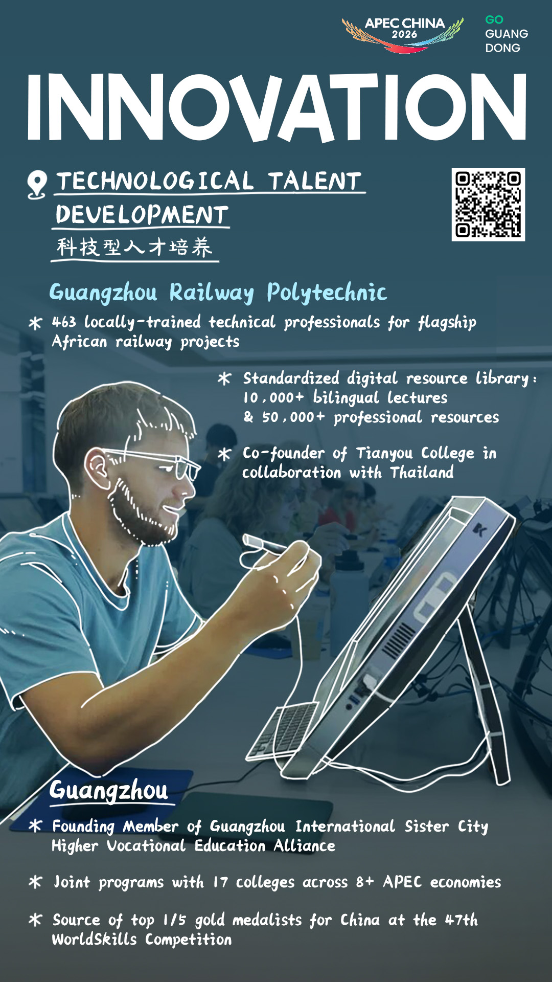 Guangzhou boasts dynamic innovation capabilities, which align closely with one of the three priorities of the APEC meeting this year, spanning cutting-edge tech, strategic emerging industries, and global talent exchanges. Follow GO Guangdong to explore how Guangzhou drives innovation in industrial development, strategic cooperation, and vocational education to facilitate diverse partnerships in the Asia-Pacific region.