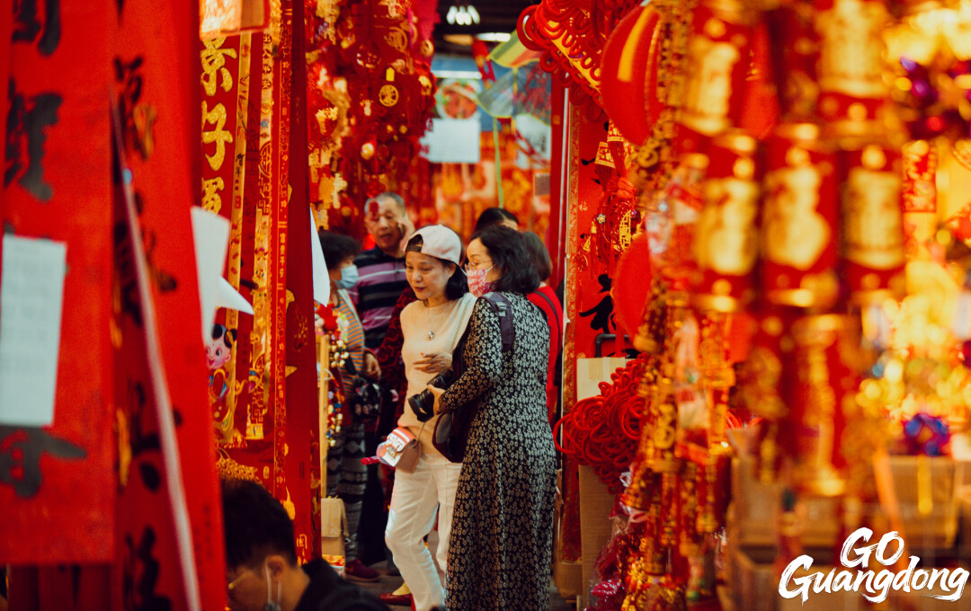 To prepare for the celebration, must-buy goods include festive dishes, holiday decorations, gifts, and clothing. All symbolize sincere wishes for good fortune and auspiciousness. In Guangdong, the best places to feel the Chinese New Year vibe in advance are the New Year Goods Streets across the region.