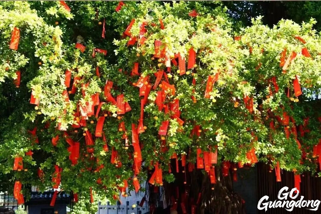 In Guangdong, the Chinese New Year traditions place great emphasis on auspicious omens. As the New Year bell chimes, Guangdong people usually go to the temples in the city or nearby to ring the bells and burn the first incense of the year. They will also write down New Year wishes on the wish plaques or red silk ribbons, praying for peace, prosperity, and all wishes to come true in the year ahead. Then they will tie these wishes on the trees in the temple, which creates a uniquely Chinese romantic atmosphere.