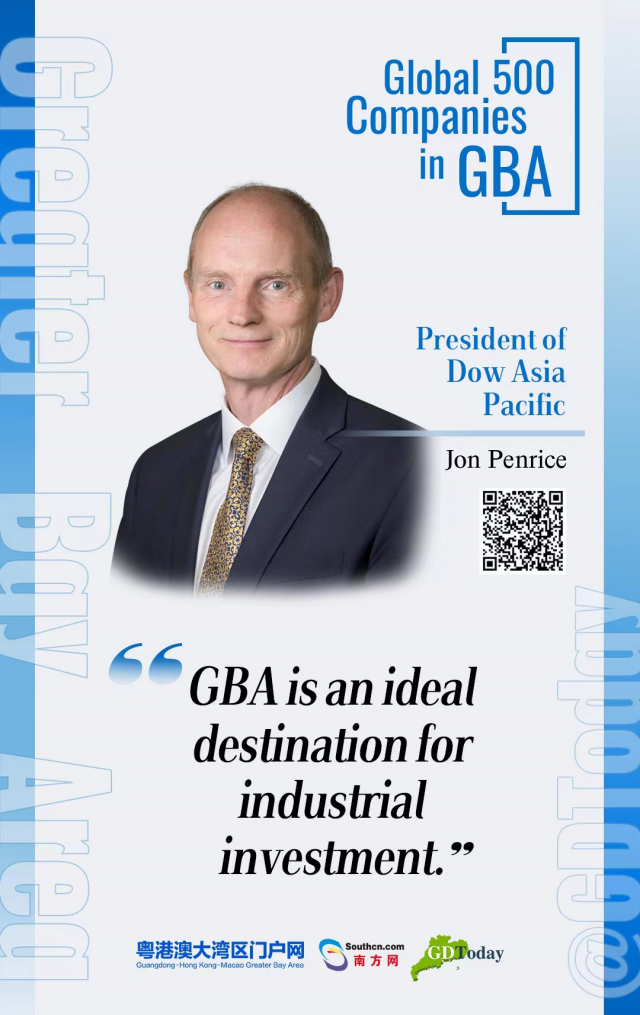 "The new economic development pattern of 'dual circulation' pushed forward by China gives full play to Guangdong's advanced manufacturing capacity and geographical advantages, which will inject new impetus to the development of the Guangdong-Hong Kong-Macao Greater Bay Area (GBA)", said Jon Penrice, President of Dow Asia Pacific, when sharing with Nanfang Daily & GDToday on Dow's investment development in Guangdong over the past 43 years.