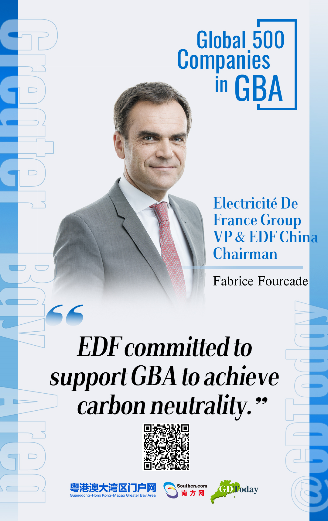 "Electricité De France (EDF) Group, which is already strongly involved in Guangdong province, is ready to further invest in the Guangdong-Hong Kong-Macao Greater Bay Area (GBA) from power generation to electricity supply services to achieve carbon neutrality together," said Fabrice Fourcade, EDF Group VP & EDF China Chairman, during an exclusive interview with Southcn.com and GDToday recently.