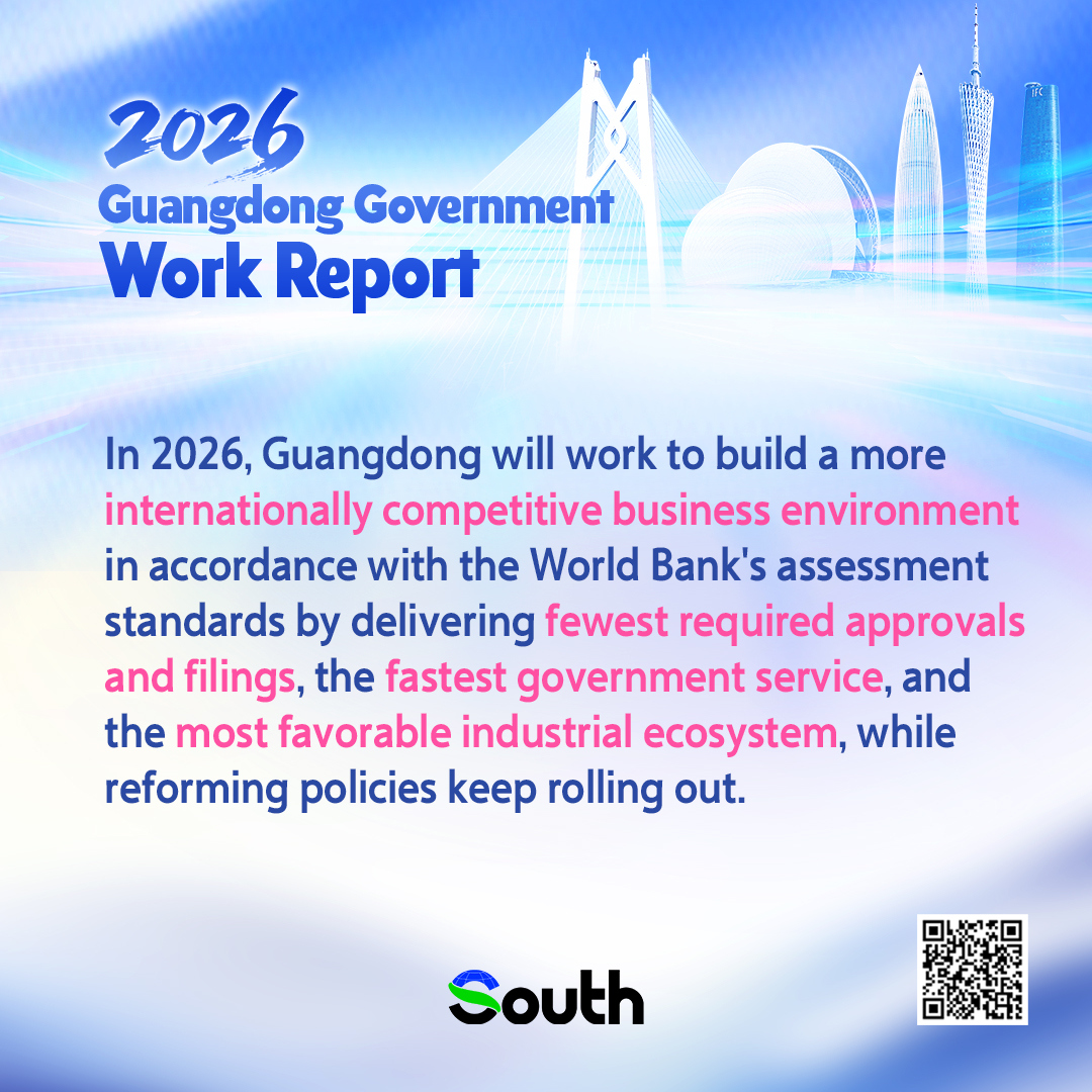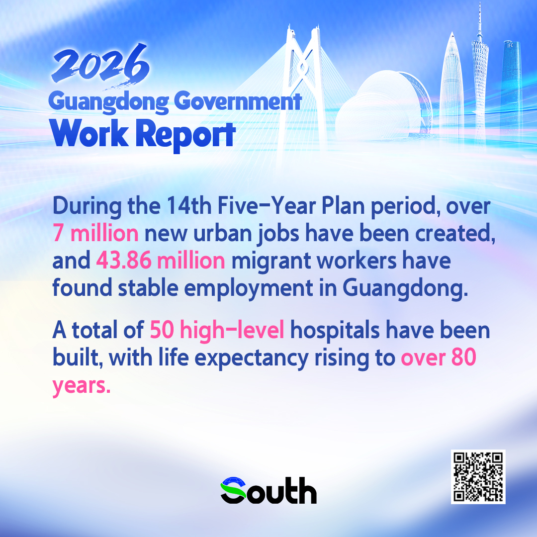 The fifth session of the 14th Guangdong Provincial People's Congress kicked off in Guangzhou on January 26. Guangdong Governor Meng Fanli delivered the Government Work Report at the opening ceremony. Here are some highlights of 2026 Guangdong Government Work Report: