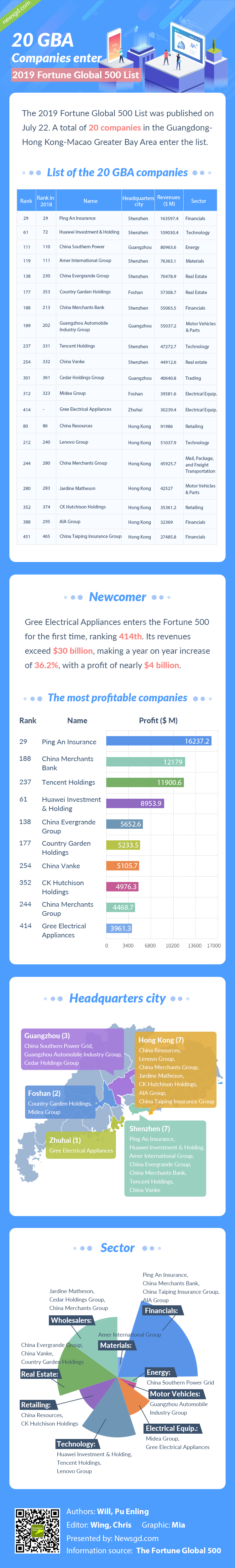 Among the 129 companies, 20 are from Guangdong-Hong Kong-Macao Greater Bay Area (GBA), matching the same number as last year. These GBA companies contain seven based in Shenzhen, seven in Hong Kong, three in Guangzhou, two in Foshan and one in Zhuhai, covering a wide range of industries such as finance, real estate and technology.