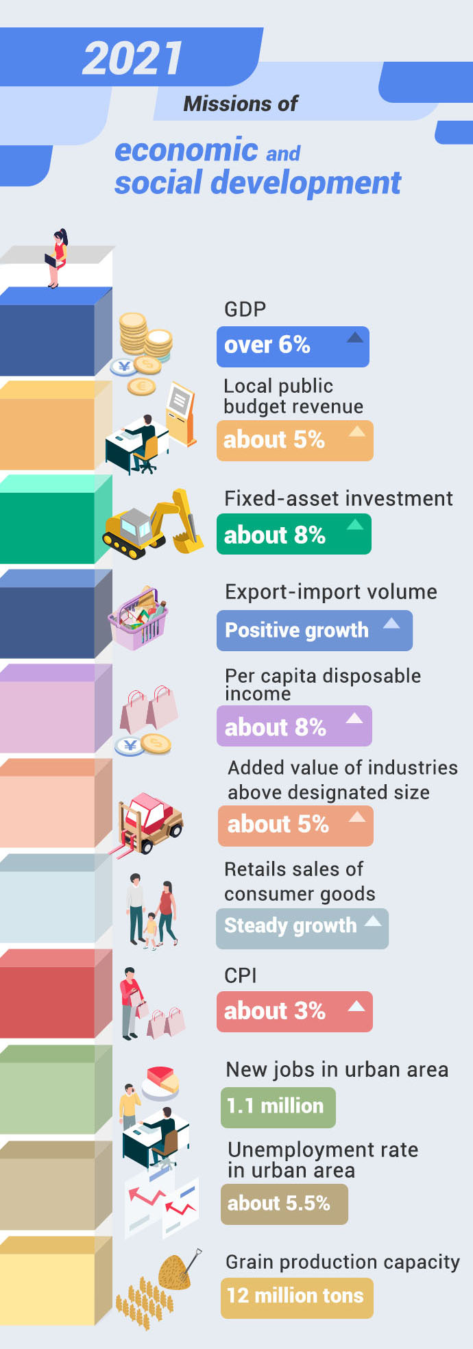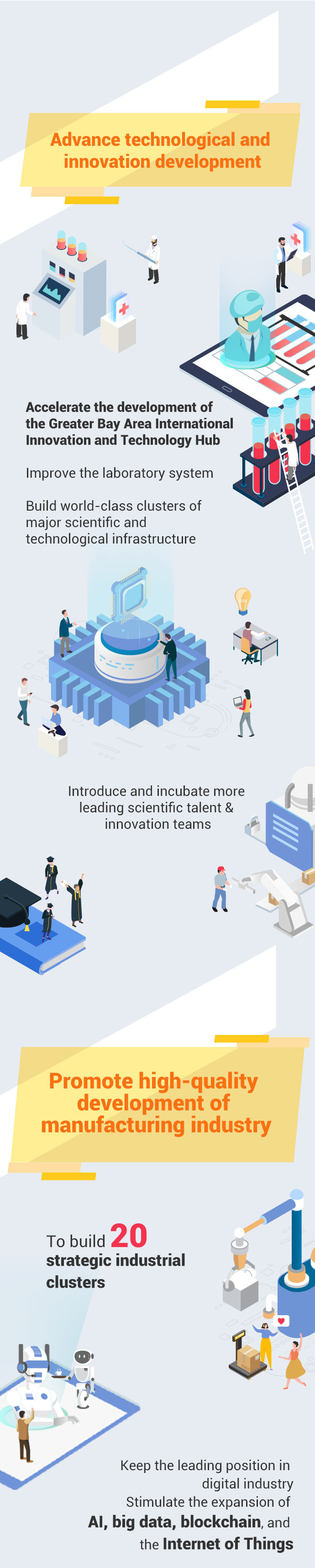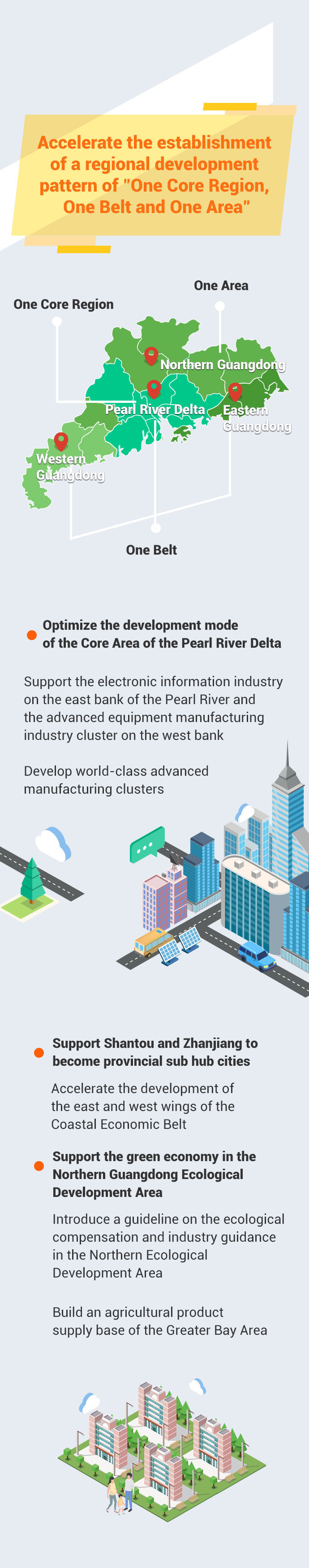 Ma also proposed Guangdong's 14th Five-Year Plan in his work report. In 2021-2025, Guangdong aims to build a strategic spearhead for a new pattern of development, to become a high-tech and industrial innovation center with global influence and further the reform and opening-up. At the same time the province will continue to coordinate the development of urban and rural areas, and make effort to become a province of happiness and attach equal importance to development and safety.