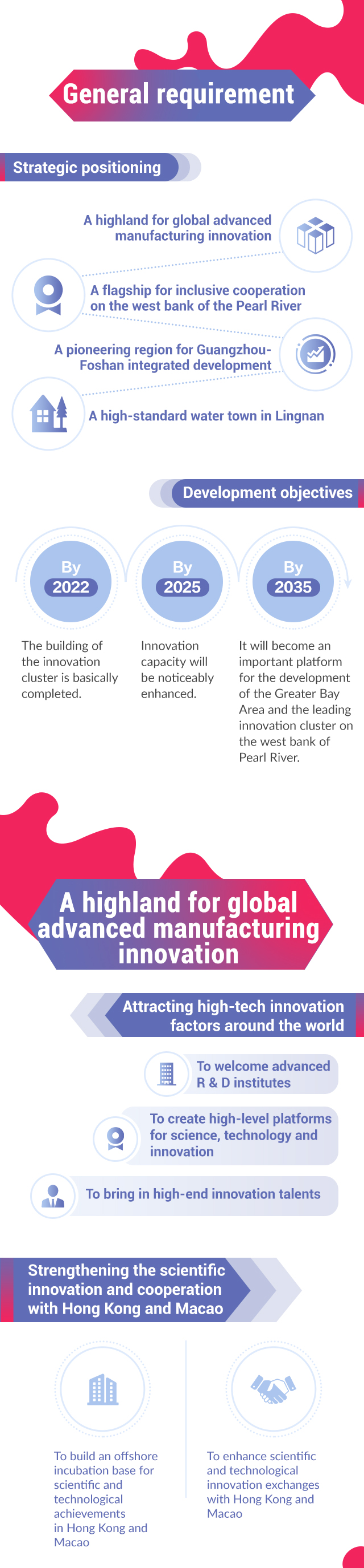 Sanlongwan will be built as an important platform for the development of the Greater Bay Area and the leading innovation cluster on the west bank of Pearl River. With an area of 130 square kilometers, the cluster bordering on Guangzhou and Foshan, will cover the Sino-German Industrial Services Zone and Guangdong-Hong Kong-Macao Cooperation High-end Services Demonstration Zone.