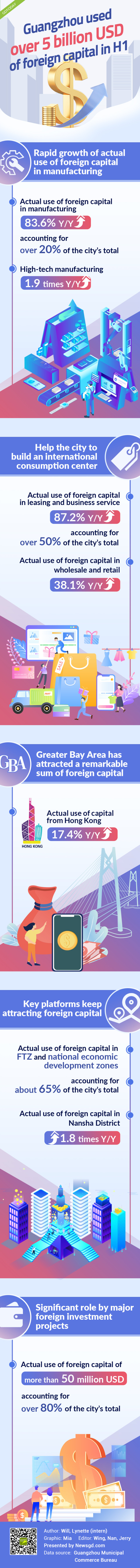 Infographics | Guangzhou used over 5 billion USD of foreign capital in H1