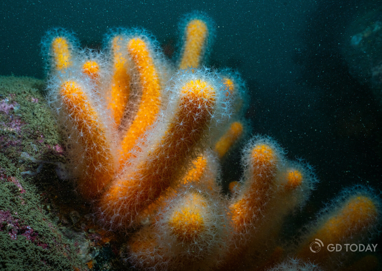Orange cup coral in the waters around Wailingding Island in Zhuhai.
