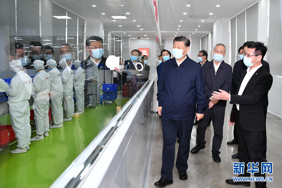4月25日至27日,中共中央總書記、國家主席、中央軍委主席習近平在廣西考察。這是26日下午,習近平在柳州螺螄粉生產集聚區,了解螺螄粉生產情況。新華社記者 殷博古 攝