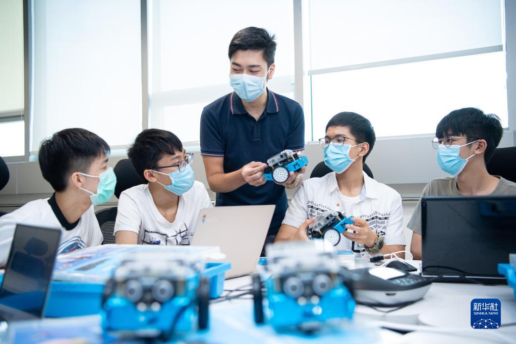 2020年7月14日,創業者吳以航在澳門青年創業孵化中心為學生上培訓課。“80后”吳以航是澳門青年創業孵化中心會員,2019年,他進駐廣州市天河區港澳青年之家,成立藍點教育技術(廣州)有限公司。新華社記者 張金加 攝