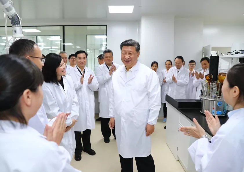 2018年10月22日至25日,中共中央總書記、國家主席、中央軍委主席習近平在廣東考察。這是10月22日下午,習近平考察珠海橫琴新區粵澳合作中醫藥科技產業園。新華社記者 謝環馳/攝
