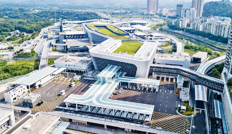 基礎設施是經濟社會發展的堅實支撐,對于促進人員便捷往來、物流降本增效、產業優化布局等具有重要作用。2020年8月26日,隨著貨檢通道閘口打開,深港間第七座陸路口岸——蓮塘/香園圍口岸正式開通,粵港澳大灣區再添一條新物流大通道。圖為蓮塘/香園圍口岸。新華社記者 毛思倩/攝