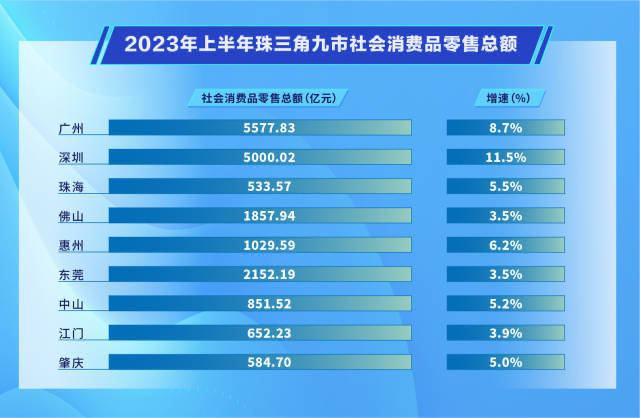 與出口、投資一道位列經濟增長“三駕馬車”,消費數據企穩對廣東穩經濟的重要性不言而喻。今年上半年,珠三角社消零“成績單”出爐,其中,深圳社消零增速為11.5%,領跑全省。
