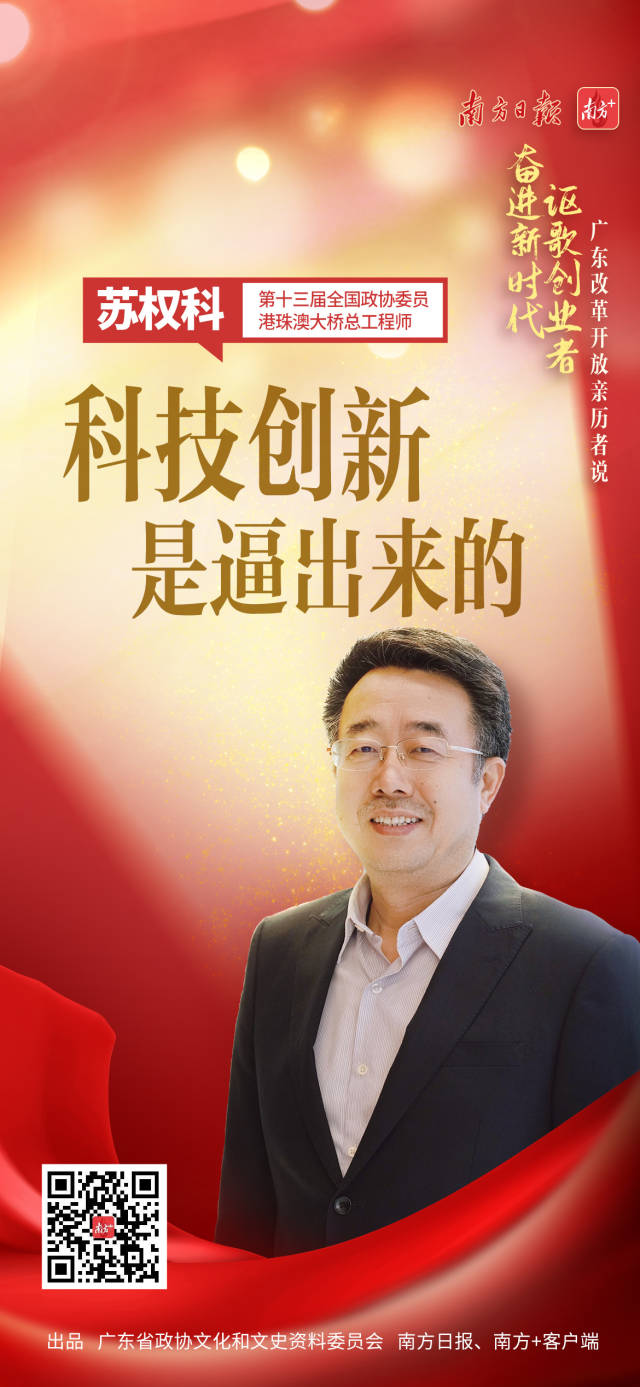 蘇權科:2008年冬天,我們在北京邀請了一批外國專家,就建設港珠澳大橋進行論證。當時有專家提出兩個問題:第一,你們要在伶仃洋海底挖近50米的深槽,但目前世界上最好的挖泥船只能挖到36米,你們能做到嗎?第二,這座大橋需要120年的使用壽命,中國有這個設計標準和施工規范嗎?這兩個問題,把我們問得啞口無言。